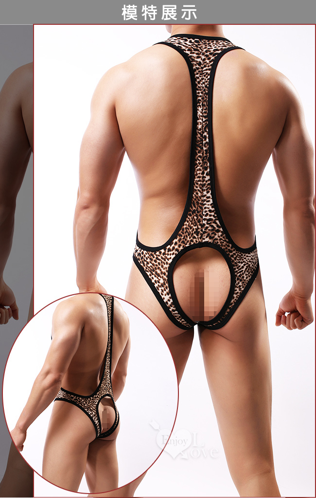 深U裸臀狂野豹紋連身衣 M-2XL