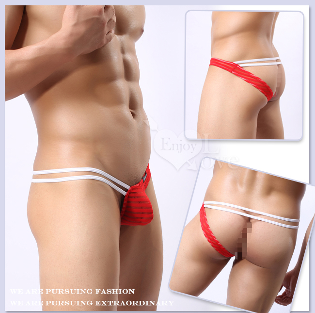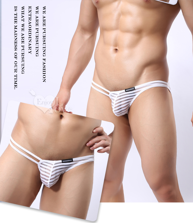 性感U凸單邊條紋透膚褲 共4色 M-XL